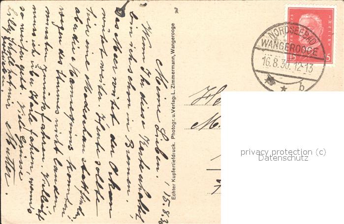 71525581 alte Postkarte Wangerooge Nordseebad Strandpartie postalisch gelaufen Erhaltung siehe scans KatCode: 11110003455021