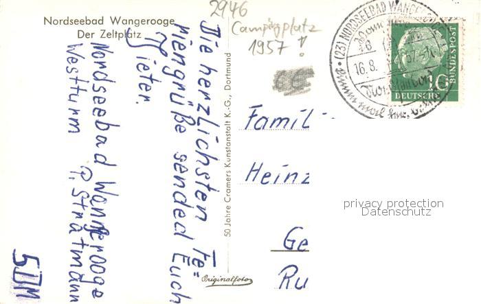 73704766 alte Postkarte Wangerooge Nordseebad Zeltplatz Campingplatz postalisch gelaufen Erhaltung siehe scans [LiesaD40] KatCode: 11110003455021
