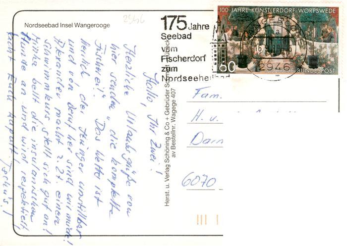 73930171 Wangerooge Wangeroog Nordseebad Badestrand Fliegeraufnahme Duenen Westturm Bahnhof Meerwasser Hallenbad Kurgarten Strand postalisch gelaufen Erhaltung siehe scans [WerneD78] alte Postkarte Wern Katcode 11110003455021