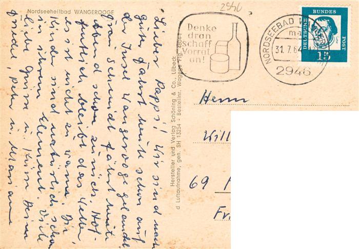 73930644 Wangerooge Wangeroog Nordseebad Fliegeraufnahme postalisch gelaufen Erhaltung siehe scans [WerneD78] alte Postkarte Wern Katcode 11110003455021