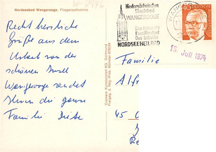 73924161 Wangerooge Wangeroog Nordseebad Fliegeraufnahme postalisch gelaufen Erhaltung siehe scans [FriedD77] alte Postkarte Frie Katcode 11110003455021
