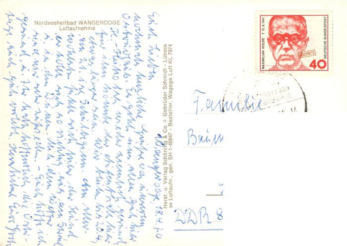73944061 Wangerooge Wangeroog Nordseebad Fliegeraufnahme postalisch gelaufen Erhaltung siehe scans [WerneD78] alte Postkarte Wern Katcode 11110003455021