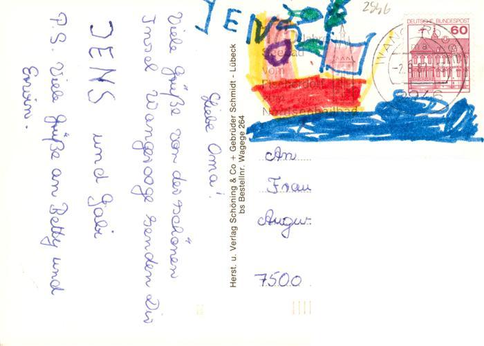 73930161 Wangerooge Wangeroog Nordseebad Fliegeraufnahme Leuchtturm Faehrschiff Dorfstrasse Strand postalisch gelaufen Fliegeraufnahme Erhaltung siehe scans [WerneD78] Fliegeraufnahme alte Postkarte Wern Katcode 11110003455021