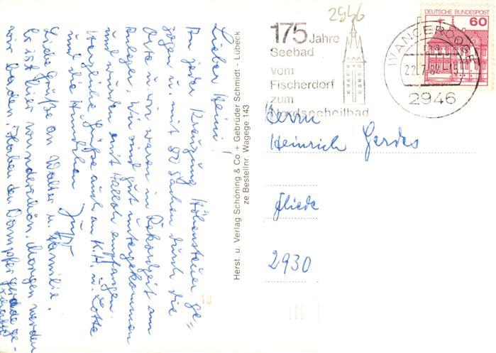 73930662 Wangerooge Wangeroog Nordseebad Strand Cafe Pudding Ortspartie Inselbahn postalisch gelaufen Erhaltung siehe scans [WerneD78] alte Postkarte Wern Katcode 11110003455021