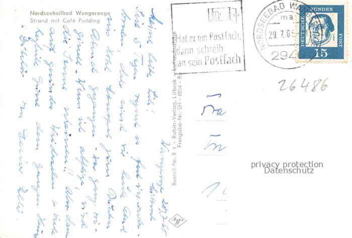74065299 alte Postkarte WANGEROOGE Wangeroog Nordseebad Strand mit Café Pudding postalisch gelaufen Fliegeraufnahme Erhaltung siehe scans [FriedD77] KatCode: 11110003455021