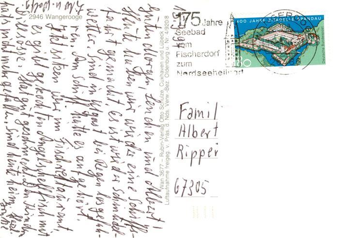 73930673 Wangerooge Wangeroog Nordseebad Strand Zedeliusstrasse Alter Leuchtturm Fliegeraufnahme postalisch gelaufen Erhaltung siehe scans [WerneD78] alte Postkarte Wern Katcode 11110003455021