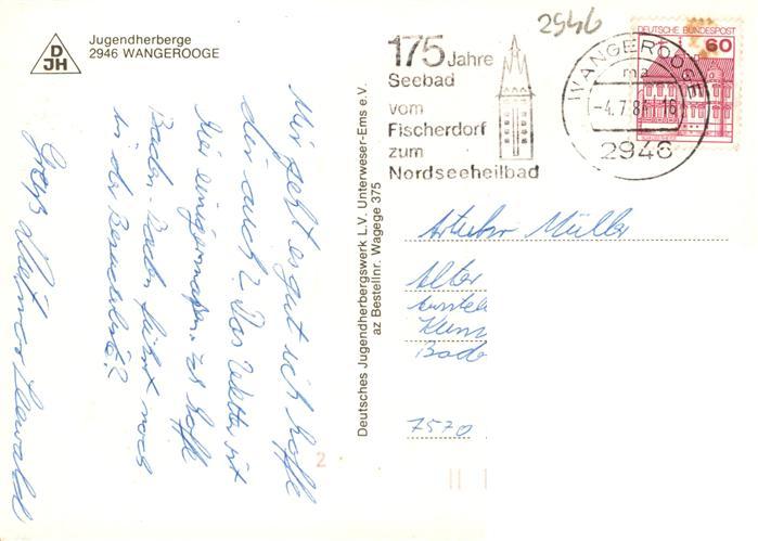 73930690 Wangerooge Wangeroog Nordseebad Westturm Jugendherberge postalisch gelaufen Erhaltung siehe scans [WerneD78] alte Postkarte Wern Katcode 11110003455021
