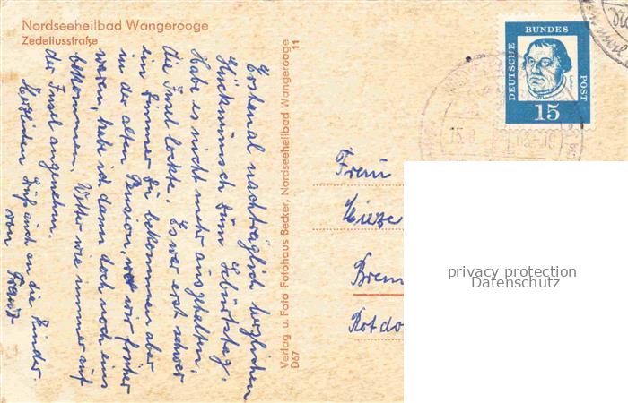 74064798 alte Postkarte WANGEROOGE Wangeroog Nordseebad Zedeliusstrasse postalisch gelaufen Erhaltung siehe scans [FriedD77] KatCode: 11110003455021