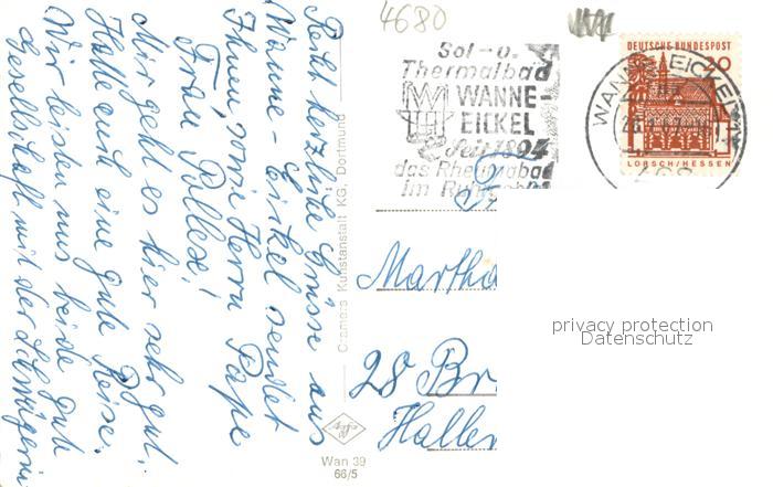 73690050 alte Postkarte Wanne-Eickel Hafen Schiffskran Sol- und Thermalbad Peckelsen Hochhaus Stadtgarten Teich postalisch gelaufen Erhaltung siehe scans [FriedD77] KatCode: 11110005916000