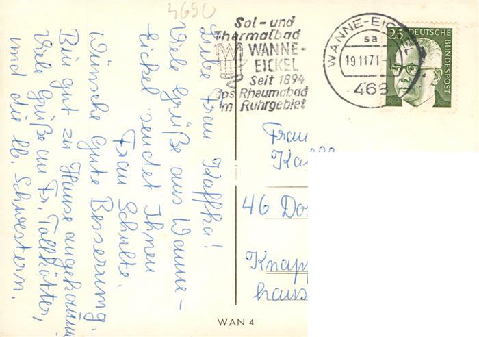 73936307 alte Postkarte Wanne-Eickel Hauptbahnhof Kurgarten Thermalbad postalisch gelaufen Erhaltung siehe scans [WerneD78] KatCode: 11110005916000
