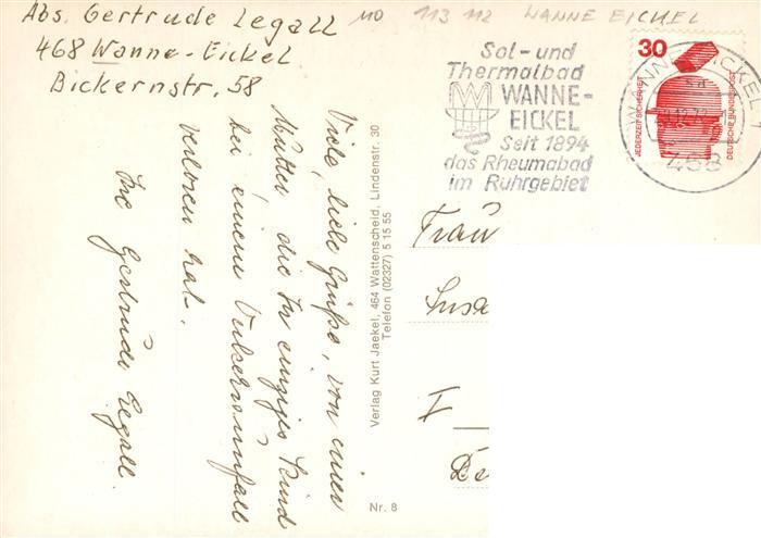 73899124 alte Postkarte Wanne-Eickel Kriegerdenkmal im Wanner Stadtgarten Hauptbahnhof Park postalisch gelaufen Erhaltung siehe scans [FriedD77] KatCode: 11110005916000