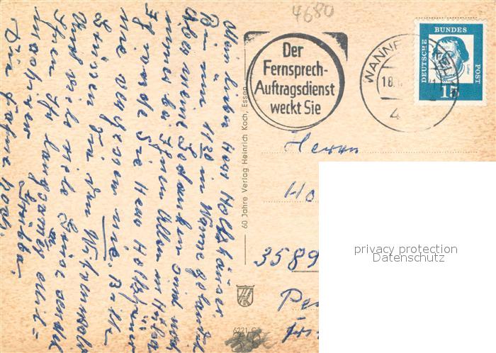 33704047 alte Postkarte Wanne-Eickel Sparkasse Hauptstr mit Bresser Haus Denkmal im Stadtgarten Rathaus Hauptstrasse Sol und Thermalbad postalisch gelaufen Erhaltung siehe scans [WerneD78] KatCode: 11110005916000