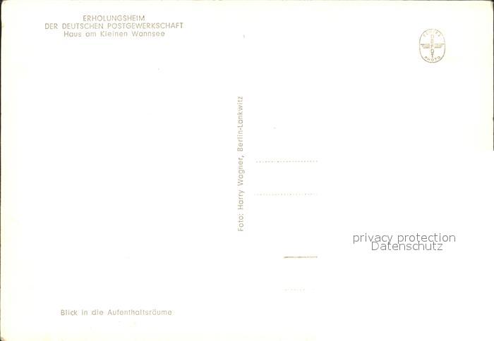 72250208 Wannsee Aufenthaltsraum Haus am Kleinen Wannsee Erholungsheim der Deutschen Postgewerkschaft postalisch nicht gelaufen Erhaltung siehe scans KatCode: 11110011000000