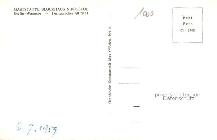 73565124 Wannsee Gasthaus Blockhaus Nikolskoe Sommergarten postalisch nicht gelaufen Erhaltung siehe scans [KathaD81] KatCode: 11110011000000