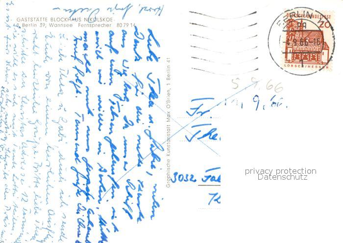 73739242 alte Postkarte Wannsee Gaststaette Blockhaus Nikolskoe Terrassenansicht postalisch gelaufen Erhaltung siehe scans [LiesaD40] KatCode: 11110011000000
