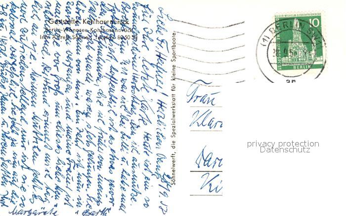 73356486 alte Postkarte Wannsee Gaststaette Kohlhasenbrueck Terrasse postalisch gelaufen Erhaltung siehe scans [FriedD77] KatCode: 11110011000000