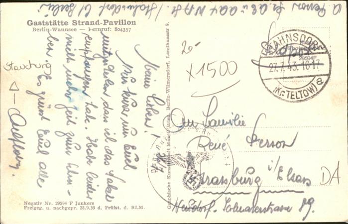 Wannsee Gaststätte Strand-Pavillon Fliegeraufna