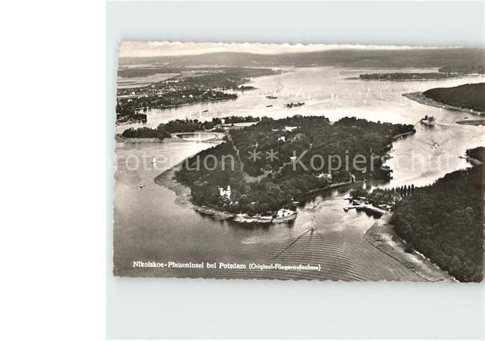 72014320 alte Postkarte Wannsee Nikolskoe Pfaueninsel bei Potsdam Fliegeraufnahme postalisch gelaufen Erhaltung siehe scans KatCode: 11110011000000