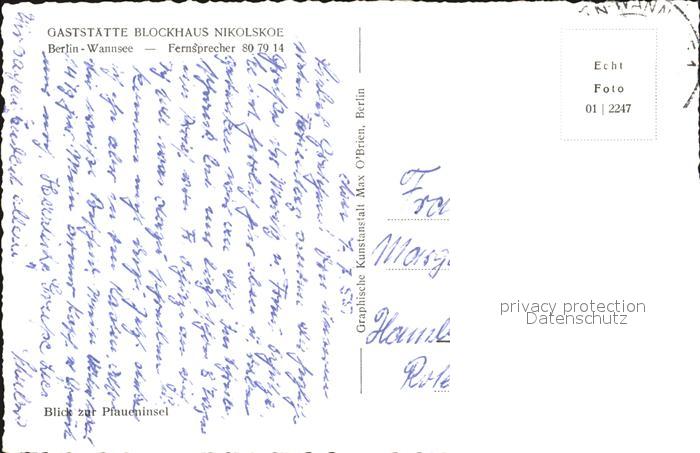 72470803 alte Postkarte Wannsee Restaurant Blockhaus Nikolskoe postalisch gelaufen Erhaltung siehe scans KatCode: 11110011000000