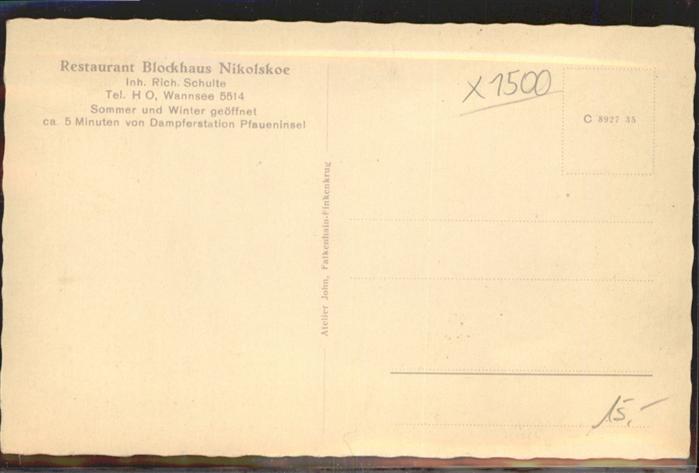 41054242 Wannsee Restaurant Blockhaus Nikolskoe KatCode 11110011000000