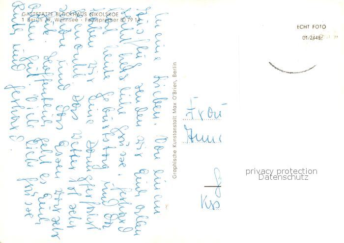 73282282 alte Postkarte Wannsee Restaurant Blockhaus Nikolskoe postalisch gelaufen Erhaltung siehe scans [LiesaD40] KatCode: 11110011000000