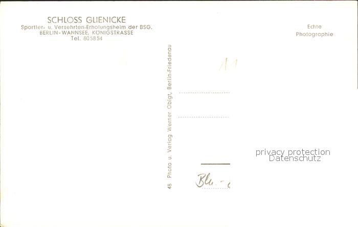71820172 Wannsee Schloss Glienicke postalisch nicht gelaufen Erhaltung siehe scans KatCode: 11110011000000