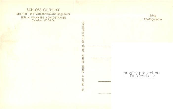 43368105 Wannsee Schloss Glienicke Erholungsheim postalisch nicht gelaufen Erhaltung siehe scans [FriedD77] KatCode: 11110011000000