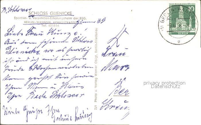 71861763 alte Postkarte Wannsee Schloss Glienicke Sportlerheim Erholungsheim Park Pavillon postalisch gelaufen Erhaltung siehe scans KatCode: 11110011000000
