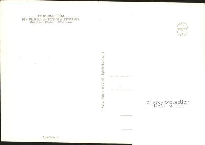 72250263 Wannsee Speisesaal Haus am Kleinen Wannsee Erholungsheim Deutsche Postgewerkschaft postalisch nicht gelaufen Erhaltung siehe scans KatCode: 11110011000000