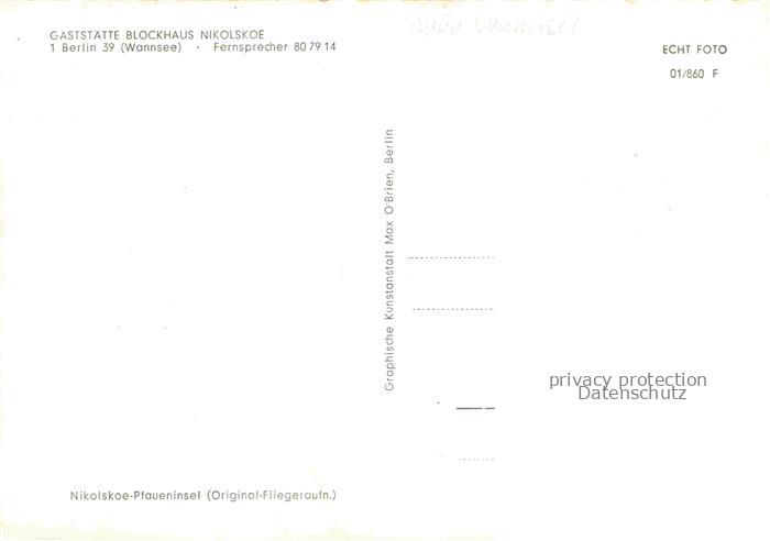 Wannsee STEGLITZ-ZEHLENDORF BERLIN Gaststaette Blockhaus Nikolscoe Fliegeraufnahme postalisch nicht gelaufen Erhaltung siehe scans [WerneD78] Wern Katcode 11110011000000