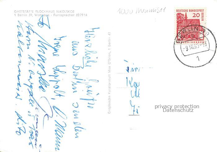 Wannsee STEGLITZ-ZEHLENDORF BERLIN Gaststaette Blockhaus Nikolskoe postalisch gelaufen Erhaltung siehe scans [WerneD78] alte Postkarte Wern Katcode 11110011000000