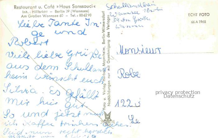 74043347 Wannsee STEGLITZ-ZEHLENDORF BERLIN Restaurant Café Haus Sanssouci Terrasse Wannseebruecke postalisch nicht gelaufen Erhaltung siehe scans [FriedD77] KatCode: 11110011000000