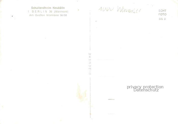 Wannsee STEGLITZ-ZEHLENDORF BERLIN Schullandheim Neukoelln postalisch nicht gelaufen Erhaltung siehe scans [WerneD78] Wern Katcode 11110011000000