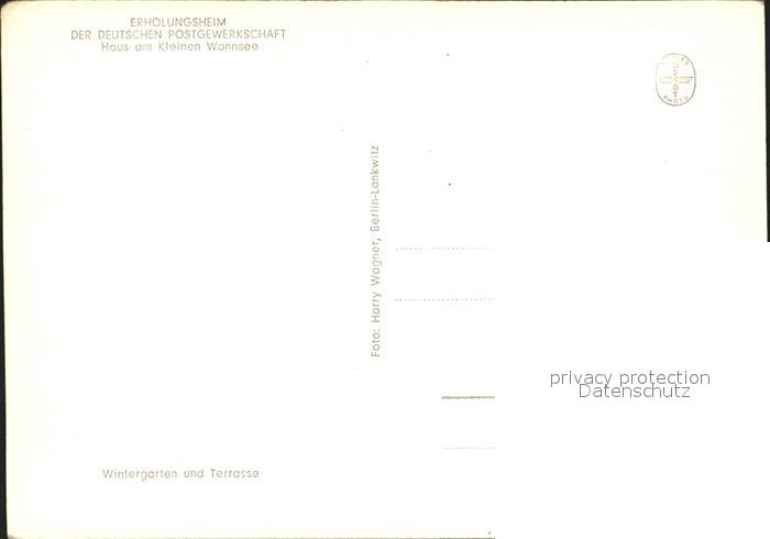 72314304 Wannsee Wintergarten Terrasse Haus am Kleinen Wannsee Schulungsheim Erholungsheim der Deutschen Postgewerkschaft postalisch nicht gelaufen Erhaltung siehe scans KatCode: 11110011000000