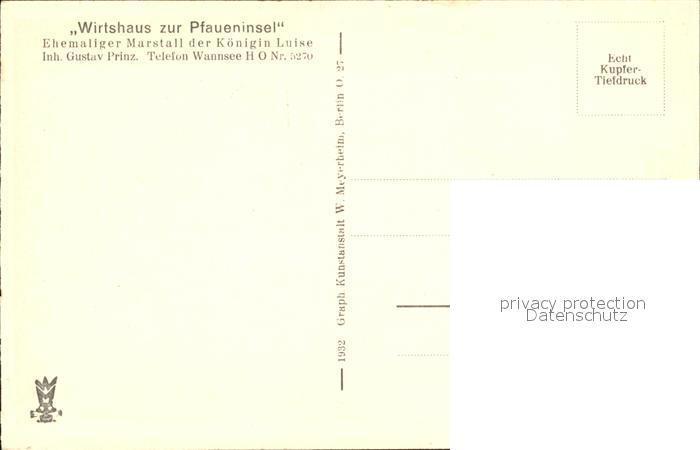72433657 Wannsee Wirtshaus zur Pfaueninsel Havel Dampfer Kupfertiefdruck postalisch nicht gelaufen Erhaltung siehe scans KatCode: 11110011000000