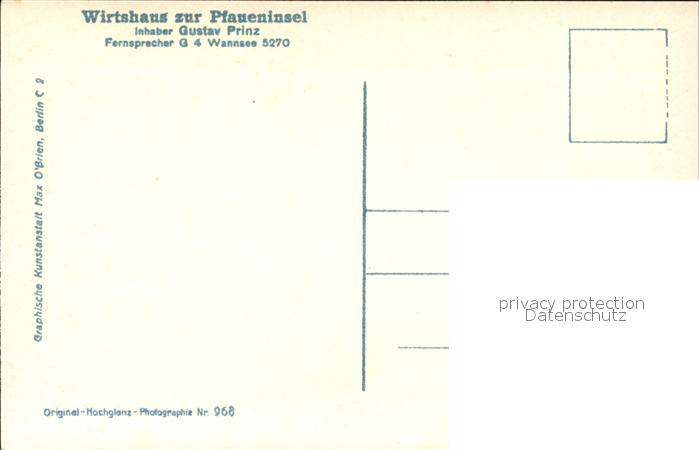 72477561 Wannsee Wirtshaus zur Pfaueninsel postalisch nicht gelaufen Erhaltung siehe scans KatCode: 11110011000000