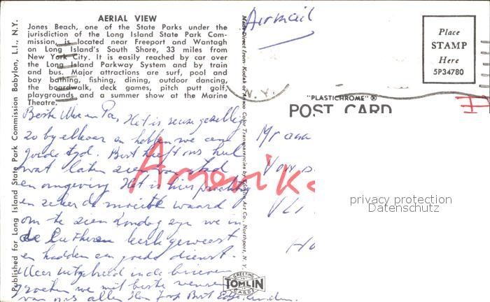 72274499 old postcard Wantagh Jones Beach Fliegeraufnahme postalisch gelaufen Erhaltung siehe scans KatCode: 14140340000000