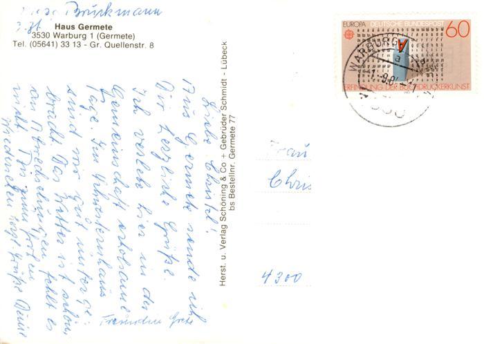 73935199 alte Postkarte Warburg Westfalen Haus Germete Fliegeraufnahme Kurmittelhaus An der Diemel postalisch gelaufen Erhaltung siehe scans [FriedD77] KatCode: 11110005762036