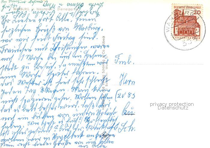 73136835 alte Postkarte Warburg Westfalen Partie an der Diemel Bruecke Ortsansicht mit Kirche postalisch gelaufen Erhaltung siehe scans [FriedD77] KatCode: 11110005762036