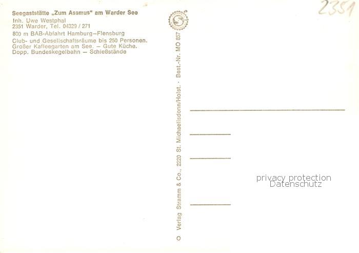 73757805 Warder Neumuenster Seegaststaette Zum Assmus Teilansichten m. Terrasse postalisch nicht gelaufen Erhaltung siehe scans [LiesaD40] KatCode: 11110001058168