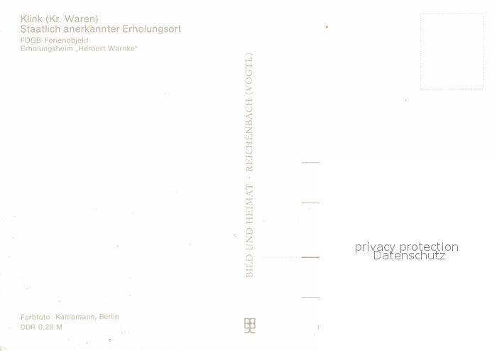 72653512 Waren Klink FDGB Erholungsheim Herbert Warnke postalisch nicht gelaufen Erhaltung siehe scans [WerneD78] KatCode: 11110013056072