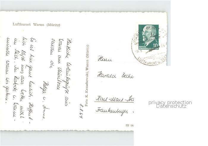 72384063 alte Postkarte Waren Mueritz postalisch gelaufen Erhaltung siehe scans KatCode: 11110013056072