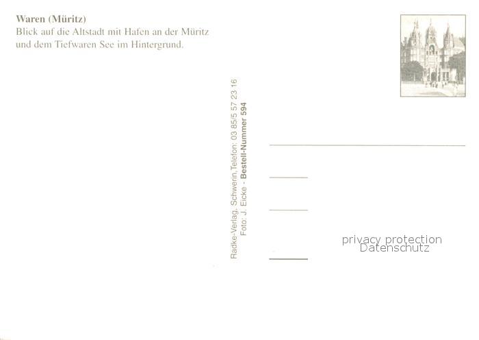 73668180 Waren Mueritz Altstadt mit Hafen an der Mueritz und Tiefwarensee Fliegeraufnahme postalisch nicht gelaufen Erhaltung siehe scans [WerneD78] KatCode: 11110013056072