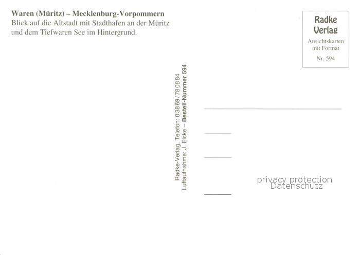 72722956 Waren Mueritz Altstadt Stadthafen Tiefwarensee Mecklenburgische Seenplatte Fliegeraufnahme postalisch nicht gelaufen Erhaltung siehe scans [FriedD77] KatCode: 11110013056072