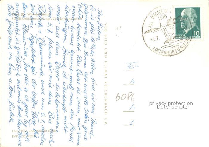 71986682 alte Postkarte Waren Mueritz FDGB Urlaubersiedlung Voelkerfreundschaft postalisch gelaufen Erhaltung siehe scans KatCode: 11110013056072