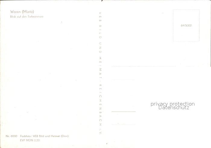 72382829 Waren Mueritz Fliegeraufnahme Tiefwarensee postalisch nicht gelaufen Erhaltung siehe scans KatCode: 11110013056072