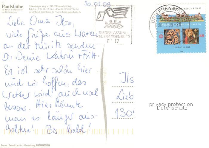 73722147 alte Postkarte Waren Mueritz Gasthof Paulshoehe Aussenansicht postalisch gelaufen Erhaltung siehe scans [LiesaD40] KatCode: 11110013056072