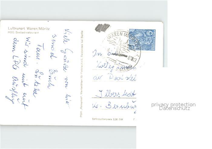 72108477 alte Postkarte Waren Mueritz HOG Seebadrestaurant postalisch gelaufen Erhaltung siehe scans KatCode: 11110013056072