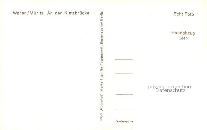 73118110 Waren Mueritz Kietzbruecke postalisch nicht gelaufen Erhaltung siehe scans [KathaD81] KatCode: 11110013056072