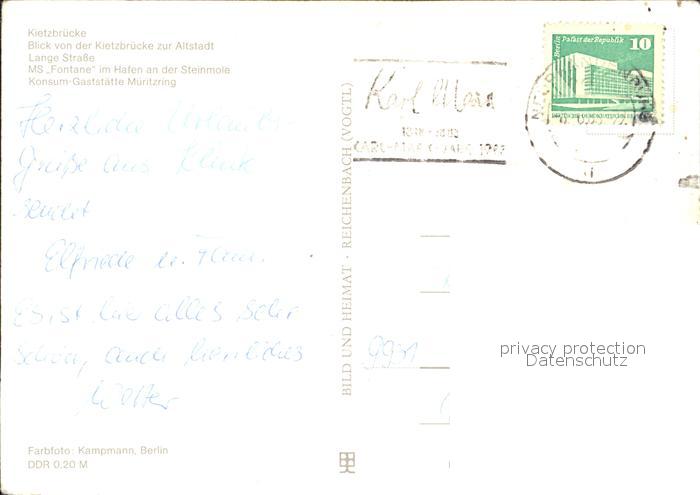 72334917 alte Postkarte Waren Mueritz Kietzbruecke Lange-Strasse postalisch gelaufen Erhaltung siehe scans KatCode: 11110013056072